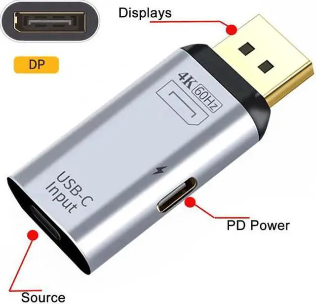 USB-C Type C Female Source to Displayport DP Sink HDTV & PD Power Adapter 4K 60hz 1080p for Phone & Laptop