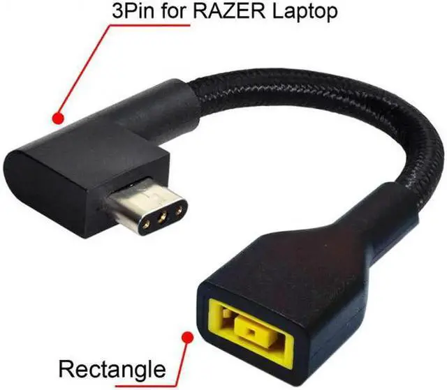 Rectangle Jack 11.0*4.5mm Input to 3Pin Power Plug Cable Compatible for Laptop Blade Pro 17 and Blade 15 Model Support 230W/160W Charge Adapter