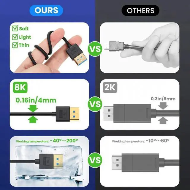 Ultrafine Cable:The ultrafine and flexible high speed cable with 4.0mm diameter fits perfectly in tight spaces, designed for Desktop, Laptop, and Graphicsapplications where flexibility and compact cable routing is required.