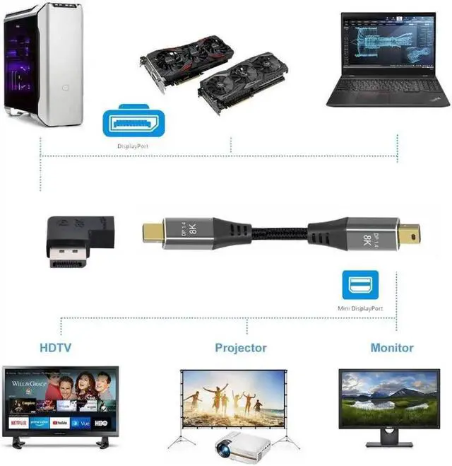 DisplayPort 1.4 Male to Mini DP Female 8K 60hz Adapter Ultra-HD UHD 4K 144hz 7680*4320 for Video PC Laptop Monitor