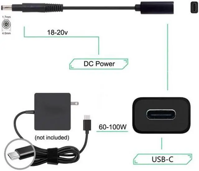 Type C USB-C Female Input to DC 4.8*1.7mm Power PD Charge Cable fit for Laptop 18-20V