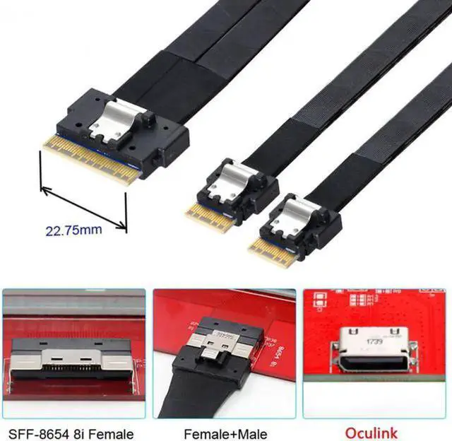 • This cable can be used to connect internal devices, e.g. a backplane with Slim Line 8654 74pin connector to a controller with oculink SFF-8611 connector.