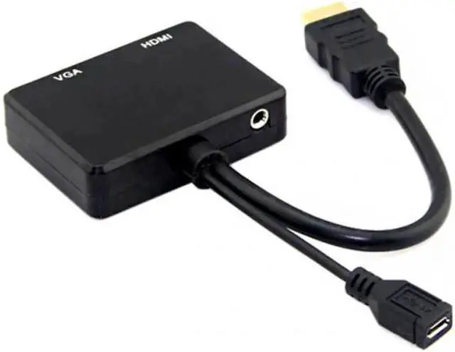 HDMI to VGA & HDMI Female Splitter with Audio Video Cable Converter Adapter For HDTV PC Monitor