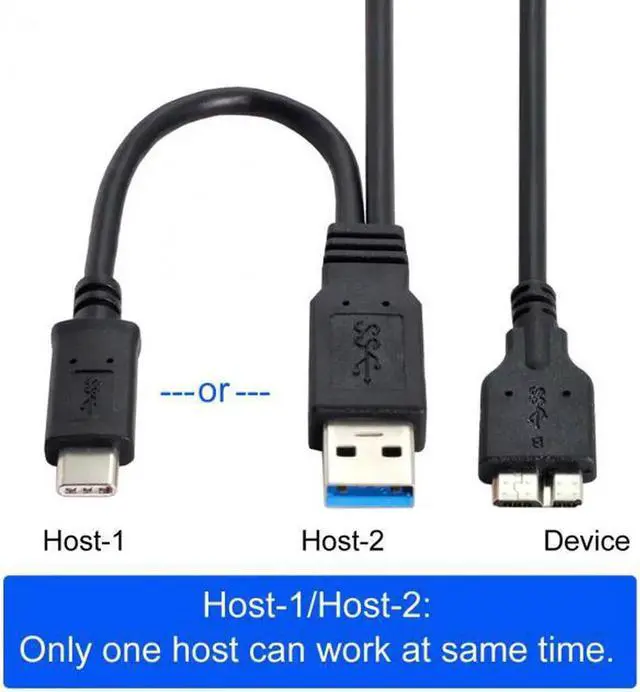 • The cable with two hosts end and it can connect USB3.1 Type-C or USB 3.0 Type-A to Laptop/Computer.