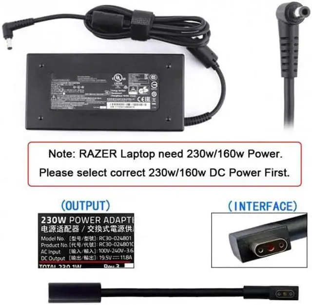 • Compatible for 230W RC30-0248 Blade Charger compatible with Blade 15 of model GTX1070/RTX2070/RTX2080 and Blade Pro 17.