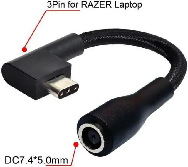 DC Jack 7.4*5.0mm Input to 3Pin Power Plug Cable Compatible for Laptop Blade Pro 17 and Blade 15 Model Support 230W/160W Charge Adapter