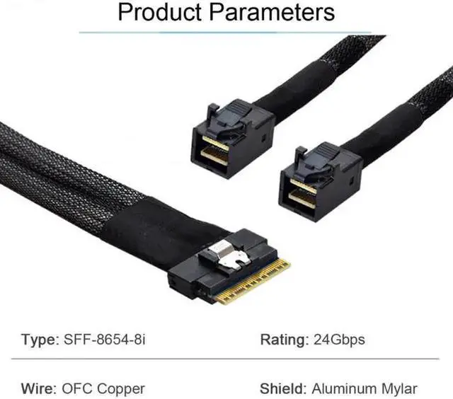 PCI-E Ultraport Slimline SAS Slim 4.0 SFF-8654 8i 74pin to Dual SFF-8643 4i Mini SAS HD Cable PCI-Express
