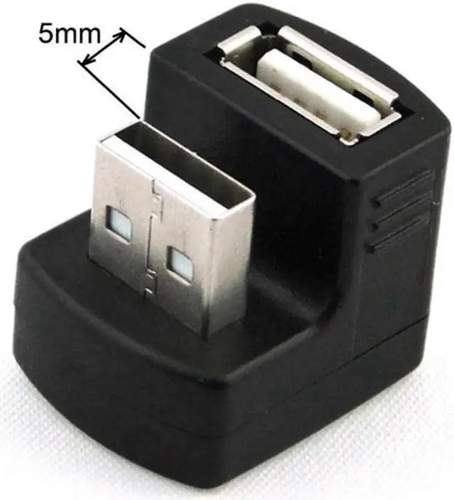 Up Angled USB 2.0 Adapter A Male to Female Extension 90 180 360 Degree Black