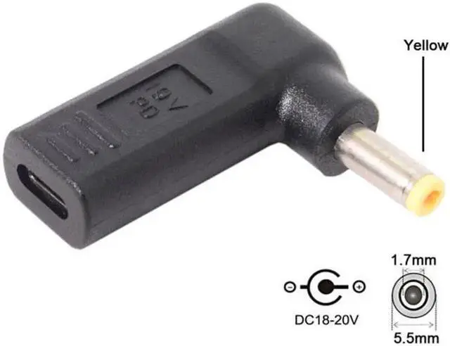 USB 3.1 Type C USB-C to DC 19V 5.5*1.7mm Adapter PD Emulator Trigger 90 Degree Angled Yellow for Delippo Acer Laptop