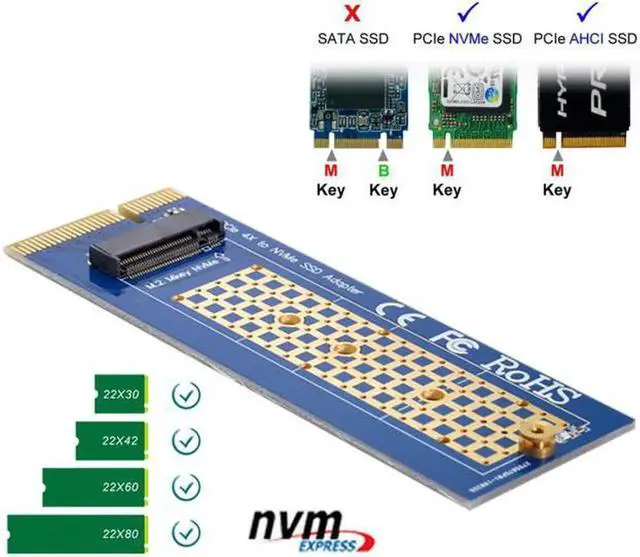 M-key NVME AHCI SSD to PCI-E Express 3.0 4X Vertical Adapter for SSD & Motherboard