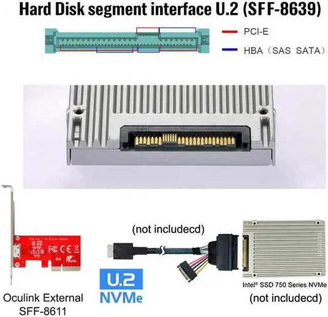 PCI-E 3.0 Express 4.0 x4 to Oculink External SFF-8612 SFF-8611 Host Adapter for PCIe SSD with Bracket