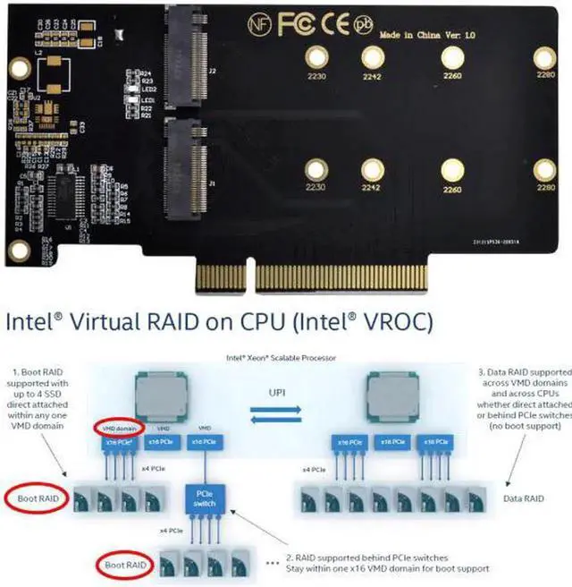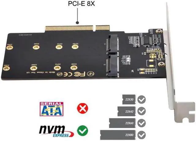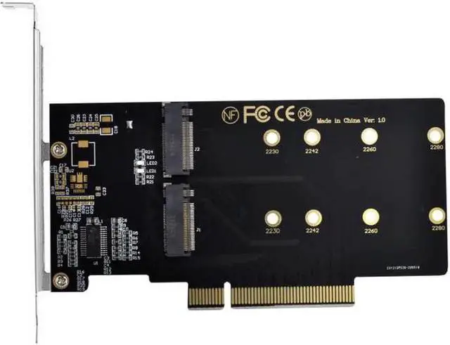 2.Only supports motherboards with detachable PCI-E channels.Control the operation of two disks based on the motherboard PCIE channel,The motherboard without PCIE signal split can only recognize one disk.