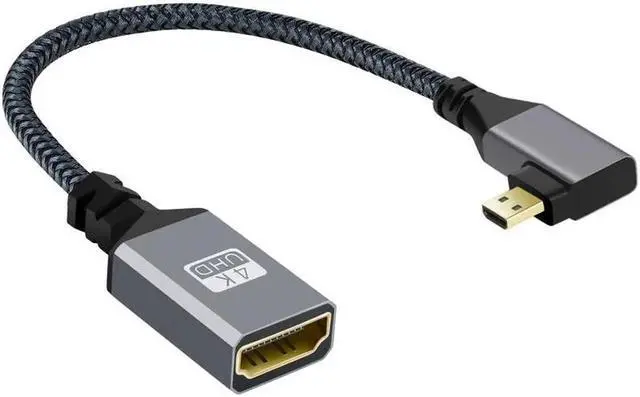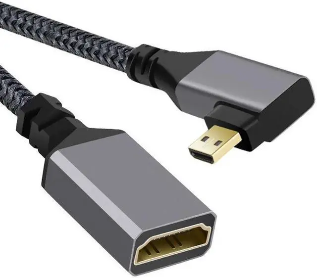 • 4K Type-D Micro HDMI 1.4 Male 90 Degree Angled to HDMI Female Extension Cable