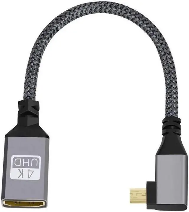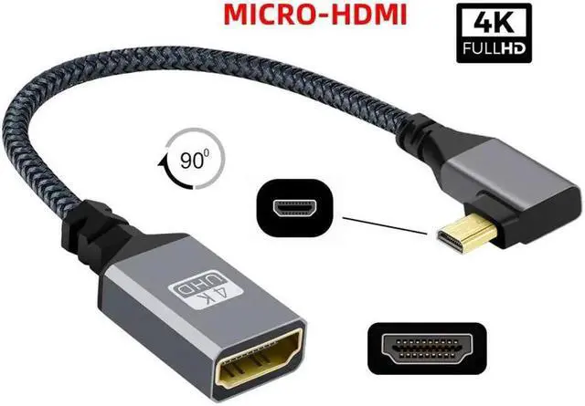 • 4K Type-D Micro HDMI 1.4 Male 90 Degree Angled to HDMI Female Extension Cable