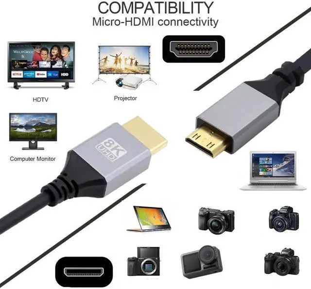 UNIVERSAL COMPATIBILITY: Backwards compatibility with all HDMI versions including HDMI 1.3 / 1.4 / 2.0 / 2.0 a / 2.0 b / 2.1. Perfect for all Mini HDMI enabled devices such as TV's, Monitors, Computers, Camera.
