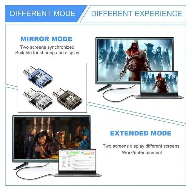 HDMI Male to HDMI 2.1 Female UHD Extension Adapter Extender with Smart LED Light Support 8K 60hz HDTV