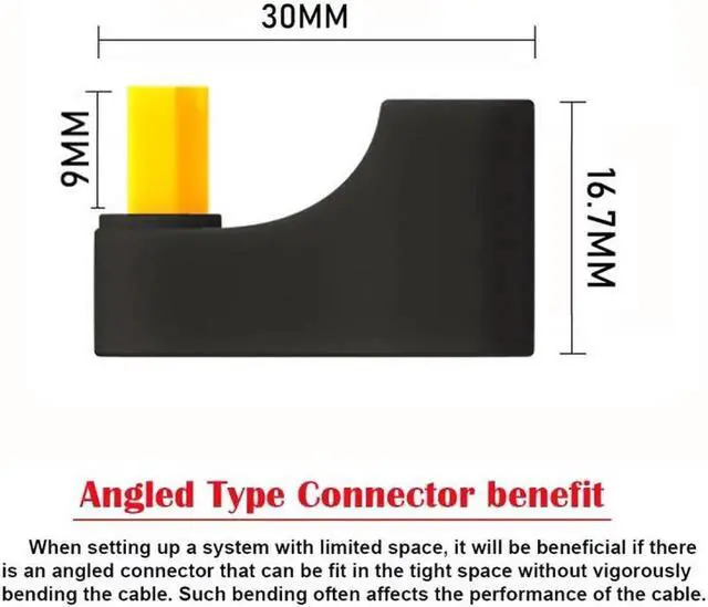 The angled type Allowing you to connect it to a female port, even if space around the port is limited.