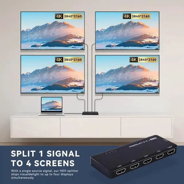 HDMI Splitter 4K 60hz Ultra-HD Converter Compatible 2.0 Switch 1-IN-4-OUT 18Gbps UHD Hub Support HDCP SST Extended