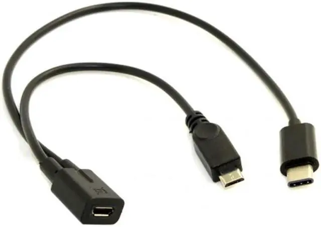Micro USB Female to USB-C Type C USB 3.1 & Micro USB Male Splitter Extension Charge Cable