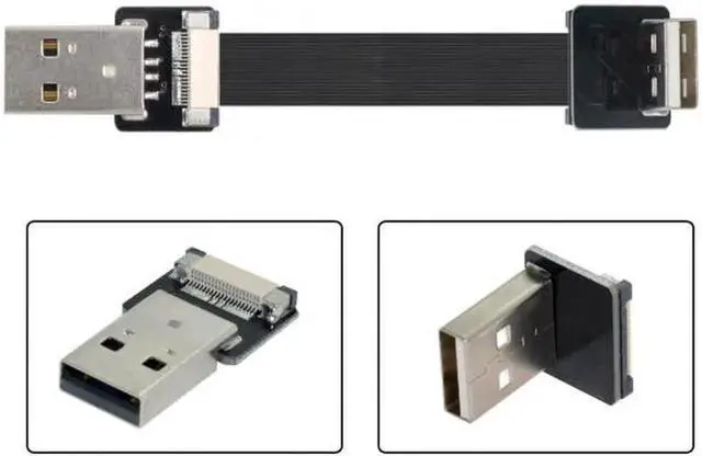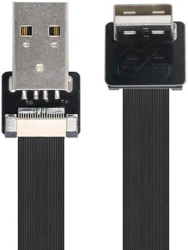 Down Angled USB 2.0 Type-A Male to Type-A Male Data Flat Slim FPC Cable 90 Degree for FPV and Disk and Scanner and Printer