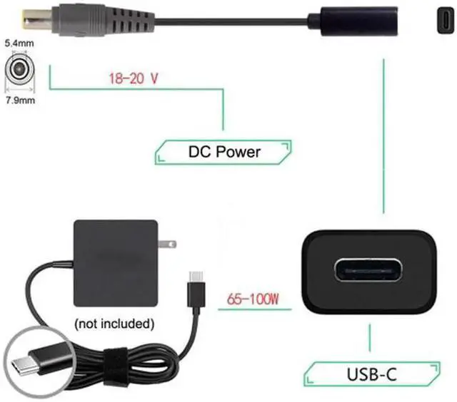 Type C USB-C Female Input to DC 7.9*5.4mm Power PD Charge Cable fit for Laptop 18-20V