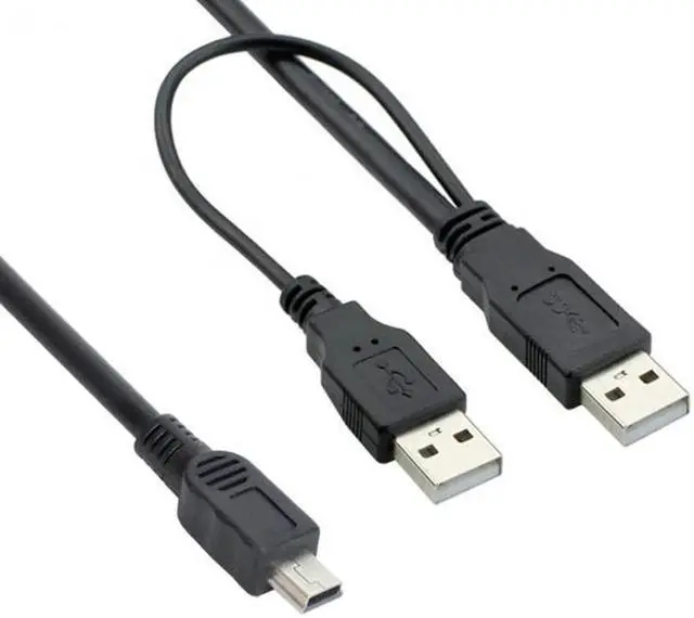 • USB2.0 Dual two A type Male to Mini 5-Pin male Y Cable,for Hard Disk Drive Case