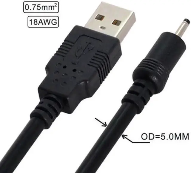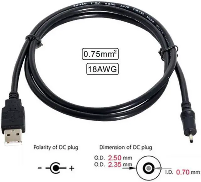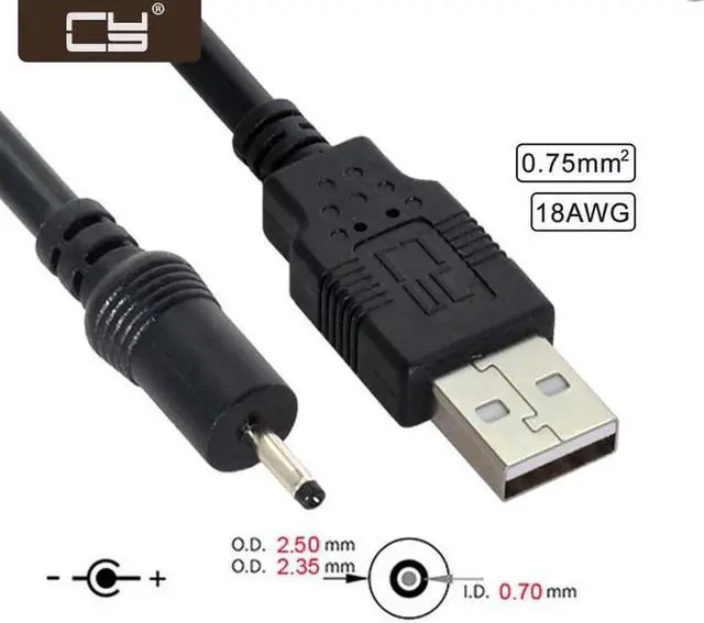 18AWG 0.75 mm*2 USB 2.0 A Type Male to DC 2.50 mm 2.35 mm 0.7 mm Power Plug 5V Cable 100cm
