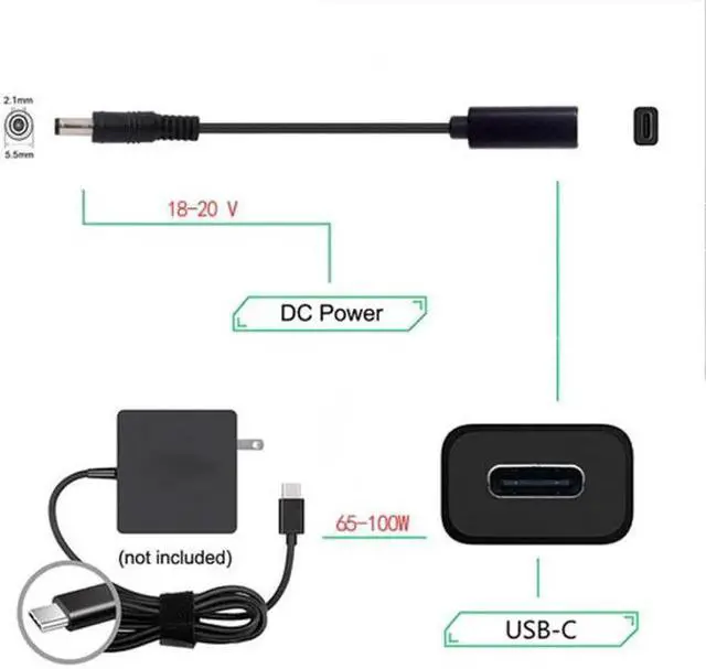 Type C USB-C Female Input to 5.5 * 2.1 mm Cable fit for Laptop 18-