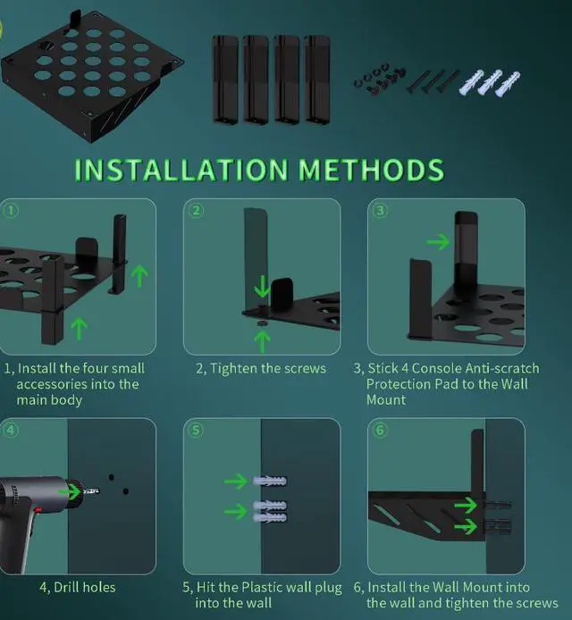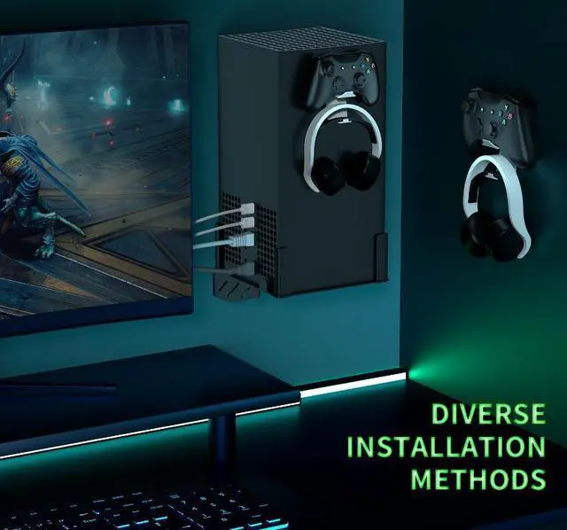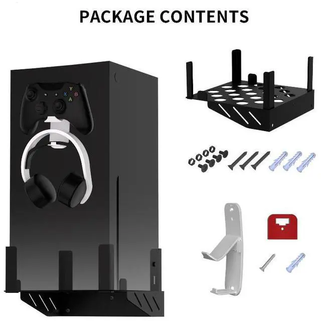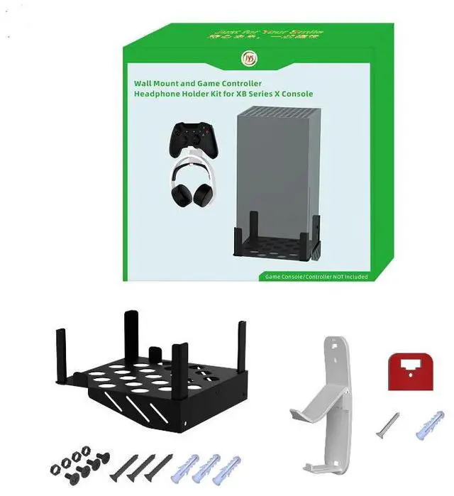 Utilize the wall space to store the Xbox Series Xconsole.Use the included screws to install it on the wall. It's simple and easy to operate. By keeping the Xbox Series Xconsole fixed on the wall, you can avoid potential dangers! The built-in hook can be used to hang PS5, Xbox Series X,PS4, Xbox One, Nintendo Switch, desktop PC game controllers, and most other third-party game controllers.