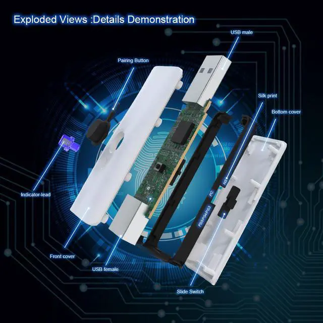 "The LED is constantly on,indicating that the converter has been connected to the Bluetooth device (as long as one device connectssuccessfully,the LED willremain constantlyon)' The LED flashes rapidly, indicating that the converter has entered the pairing state