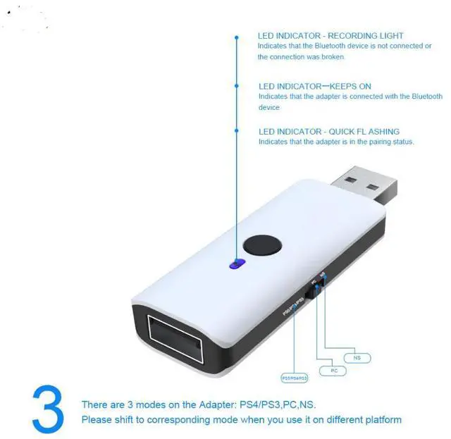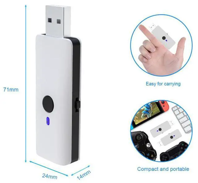 3. Wired connectionJust connect the handle to the USB interface of the converter via the USB cable.Supported devices: Wired devices (Ps3, Ps4,Ps5, Xbox360, Xboxone original and most third-party authorizedcontrollers, Xinput controller) Bluetooth devices (PS3 original, PS4 original, PS5 original, Xboxone S, WiU original,Switch Pro Controller, Switch Joy-Con controller)