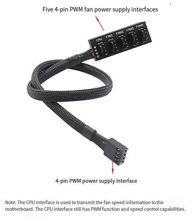 Five-pulse PWM hub:Motherboard PWM temperature control speed regulation/5-channel fan hub