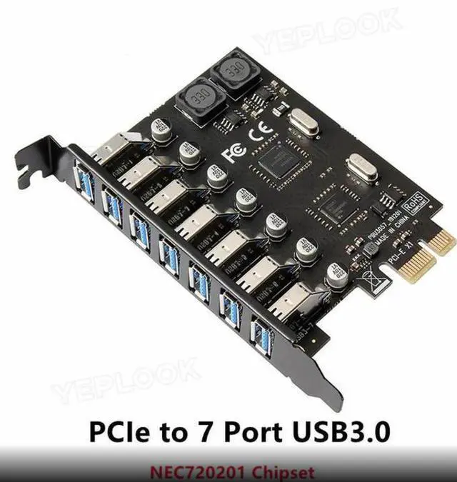 • USB 3.0 PCI-E Expansion Card 7 Ports USB 3.0 Hub Adapter External Controller Card 5Gbps for PC Computer Desktop Dual NEC Chipset