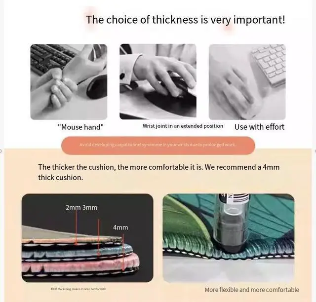• The thicker it is, the higherthe elasticity, and the betterit is at protecting the wrist.Soft support, protecting the wrist.Heat transfer printing