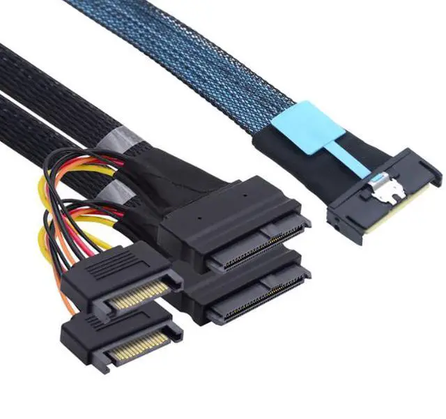 Slimline SAS MCIO 8i 74P to 2 SFF 8639 + 15P Server Data Connection Cable