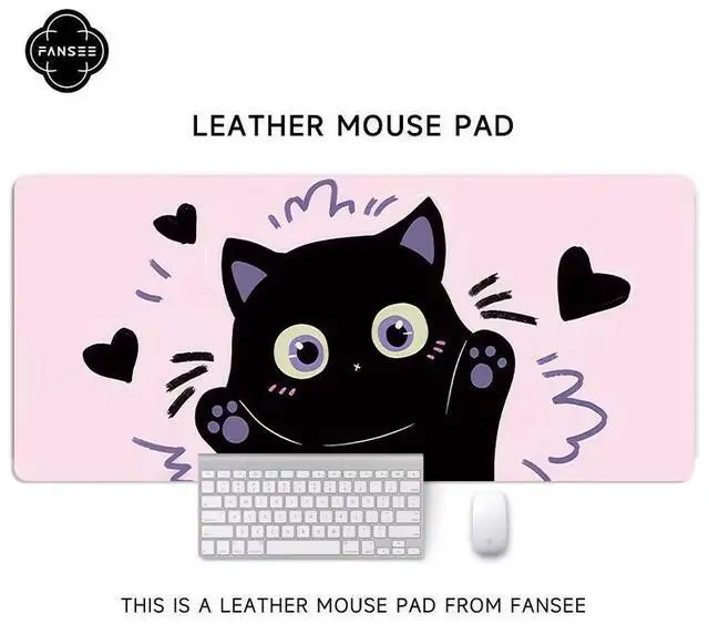 Black cat mouse pad - Extra large, cute cartoon-themed, custom-made computer keyboard pad, office desk pad, large size 35.43 x 15.75 inches 2