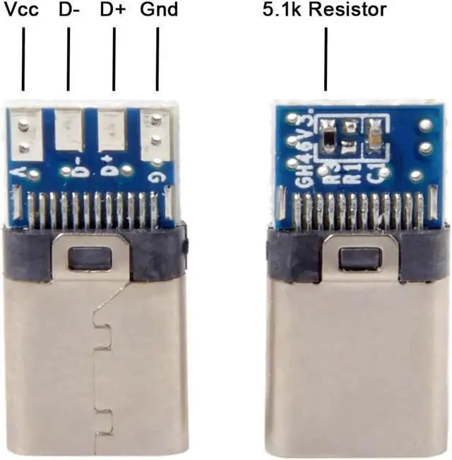 5.1k resistor for Type-C OTG Host function, not work for PD and data function.