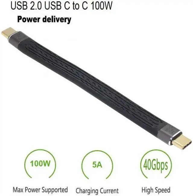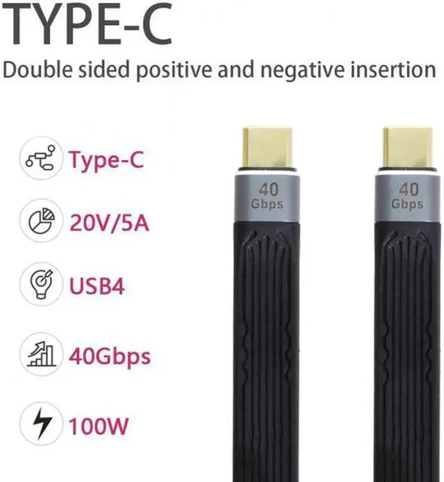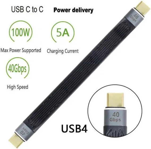 Type-C USB-C Male to Male USB4 40Gbps 100W 8K Flat Slim FPC Data Cable for Laptop and Phone 13cm