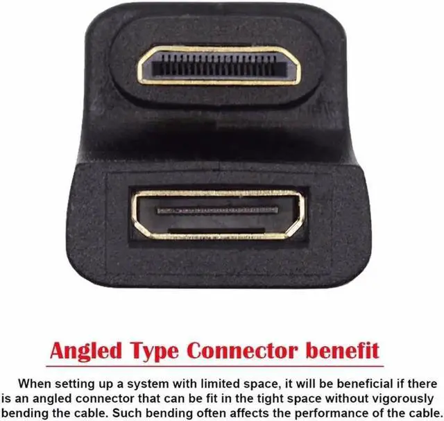 The angled type Allowing you to connect it to a female port, even if space around the port is limited. Port Savers are the perfect solution for relieving wear and tear on your equipments Mini HDMI ports due to constant plugging and unplugging or when heavy Mini HDMI cables put extra strain on the connectors. Both connector are Mini HDMI port. Converts an Mini HDMI Male Plug to a Mini HDMI Female Jack or Vice Versa. Repositions Cable Jack for Easy Access Where Space is Limited. Supports High Definition Resolutions 4K, 1080p, 1080i, 720p, and Standard Video Format.