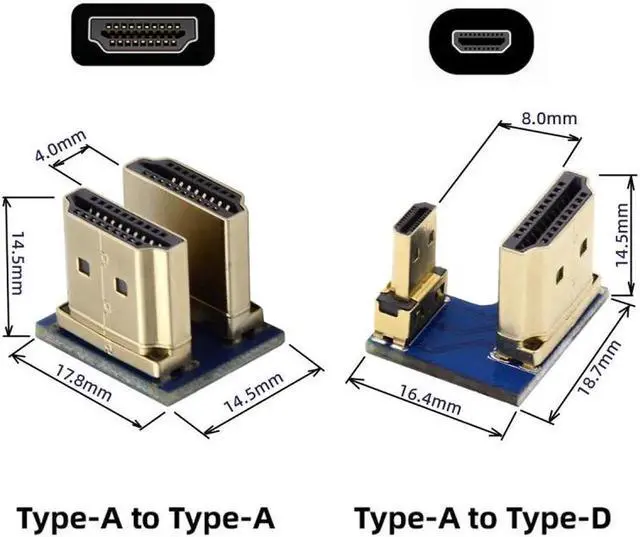2pcs/set HDMI to Micro HDMI Type A to Type-D Male Connector Socket for Raspberry PI 3B/3B+/4B Opposite U Shape Back Angled