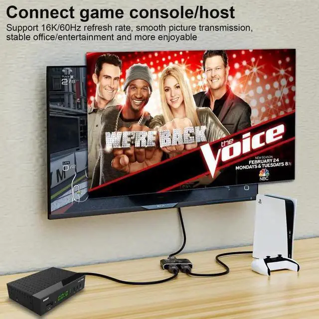 Splitter: Support 16K@60Hz, 8K@60Hz, 4K@240Hz, 4K@144Hz, 1080P@240Hz resolution, provide you with transfer rates up to 80Gbps and backward compatible with all previous DP standards. (You need connect standard DP 2.0 cable to enjoy visual effects. )16K
