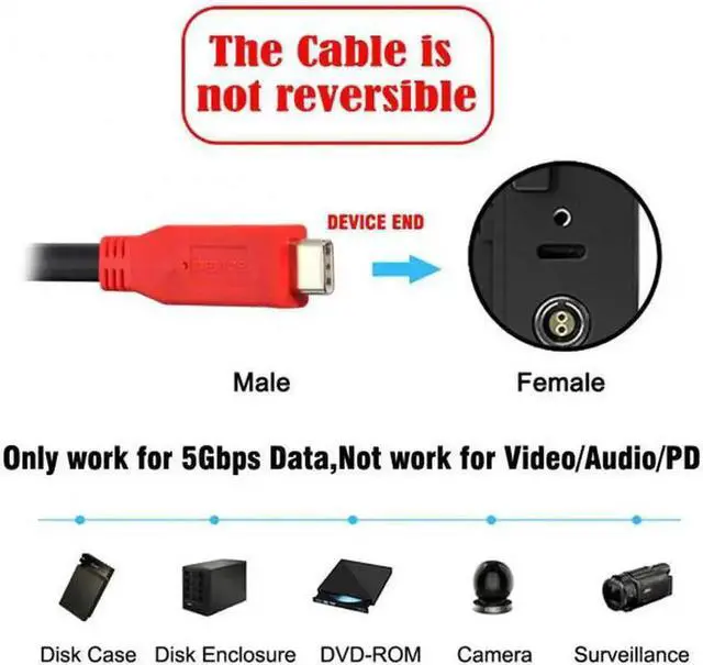 • This USB-C cable is only one way transmission, not bidirectional. Please notice the host and device.