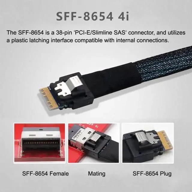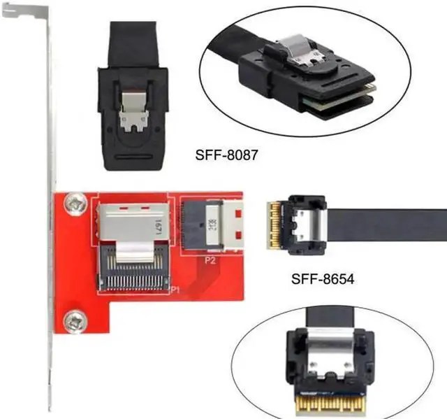 PCI-Express 4.0 Slimline SAS SFF-8654 to Mini SAS SFF-8087 PCBA Female Adapter With Bracket