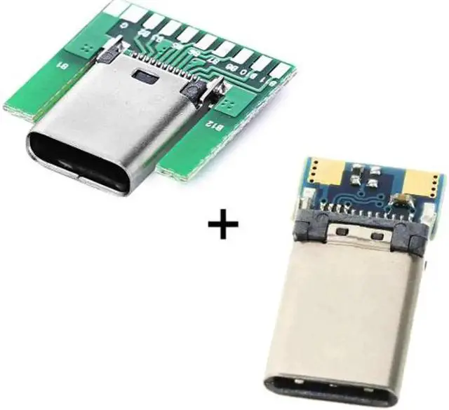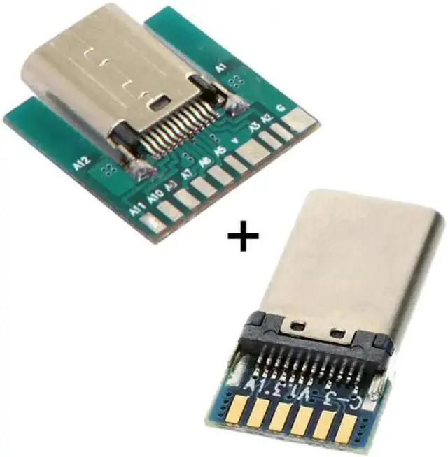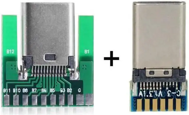 DIY 24pin USB 3.1 Type C Male & Female Plug & Socket Connector SMT type with PC Board 1 set