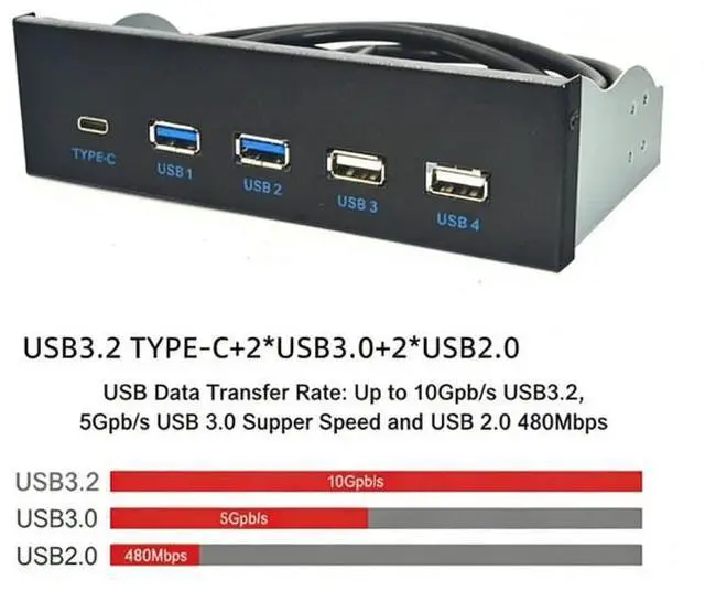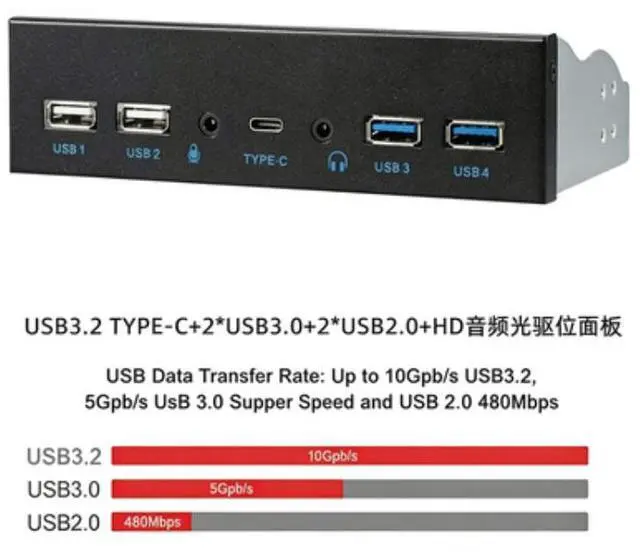 USB 3.2 GEN2 front panel with 10G optical drive slot, 2 USB 3.0 + 2.0 + TYPE-C TYPE-E ports panel