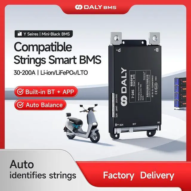 DALY BMS 100A 4S-8S 12V-24V - Protección de Batería de Litio con Monitoreo Bluetooth Inteligente Integrado LiFePO4 Li-ion LTO para Bicicletas Eléctricas y Scooters