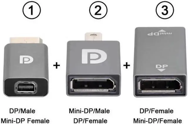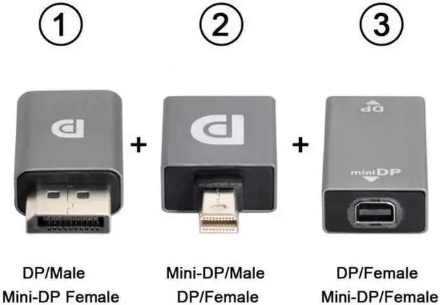 The package included: one DP male to Mini-DP female,one DP female to Mini-DP male,one DP female to Mini-DP female.