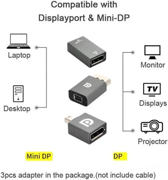 3pcs Mini DisplayPort 1.2 4K 60hz to DP Adapter Male Female Ultra-HD UHD for Video PC Laptop TV