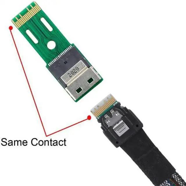 This adapter can be used to connect internal devices, e.g. a backplane with Slim Line SAS connector to a controller with Slim SAS SFF-8654 4i connector.