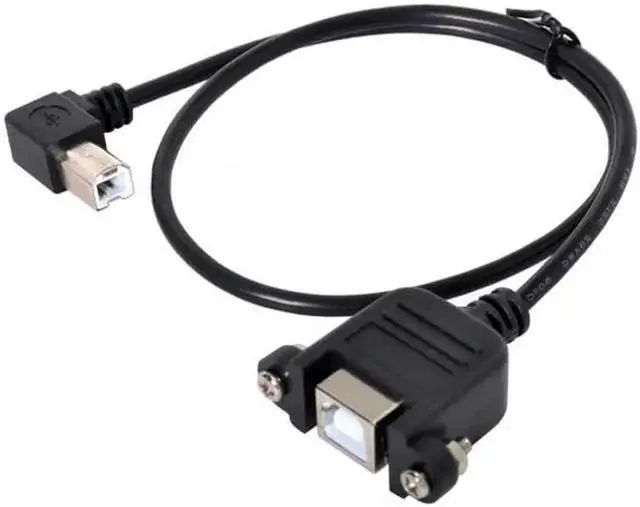 90 Degree Right Angled USB B Type Male to Female extension cable with screws for Panel Mount 50cm
